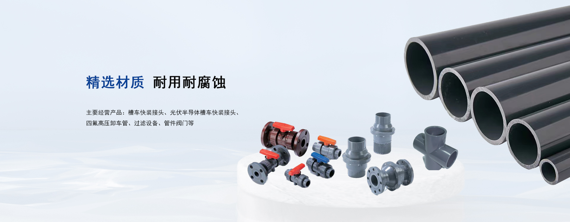 產(chǎn)品中心 主要經(jīng)營(yíng)產(chǎn)品:槽車快裝接頭、光伏半導(dǎo)體槽車快裝接頭 、四氟高壓卸車管 、過濾設(shè)備、 管件閥門等